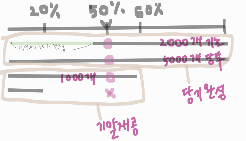 | 가공원가 완성도 - 1000개: 0.5 + 0.6*0.5 = 0.8 - 1000개: 0.5 + 0.2*0.5 = 0.6 |