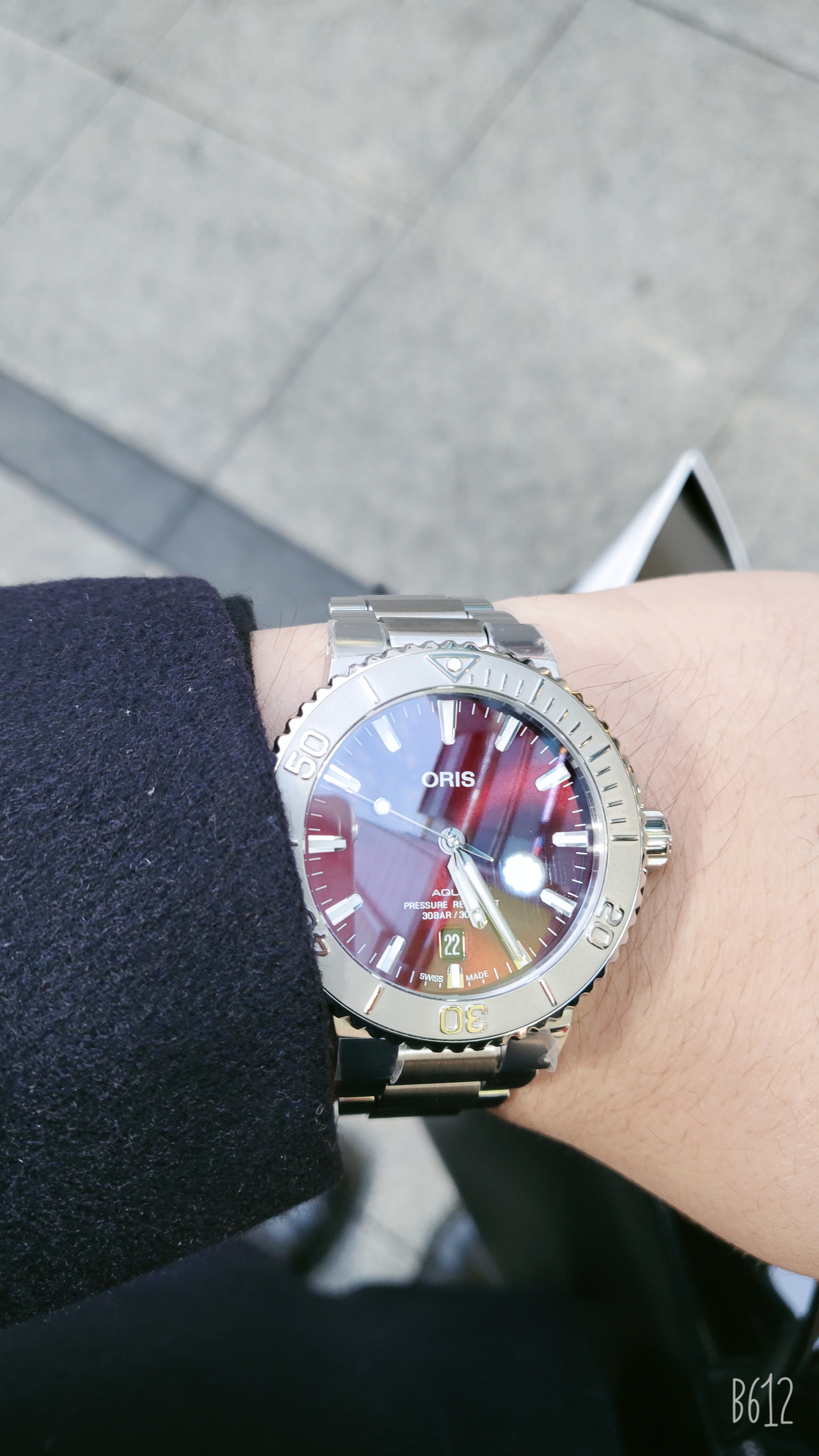 한참 고민하다 고르게 된 제품은 [오리스 아퀴스 데이트 릴리프]. 스테인리스 스틸로 된 제품이라 약간의 스크래치가 있을 수 있다고 한다. 하지만 크게 문제될 것 같지는 않다. 오토매틱 무브먼트이기 때문에 낮시간에 차고 돌아다니는게 좋다. 로운쥬얼리에서 살 때 좋았던 점은 사은품으로 워치 와인더를 준다.