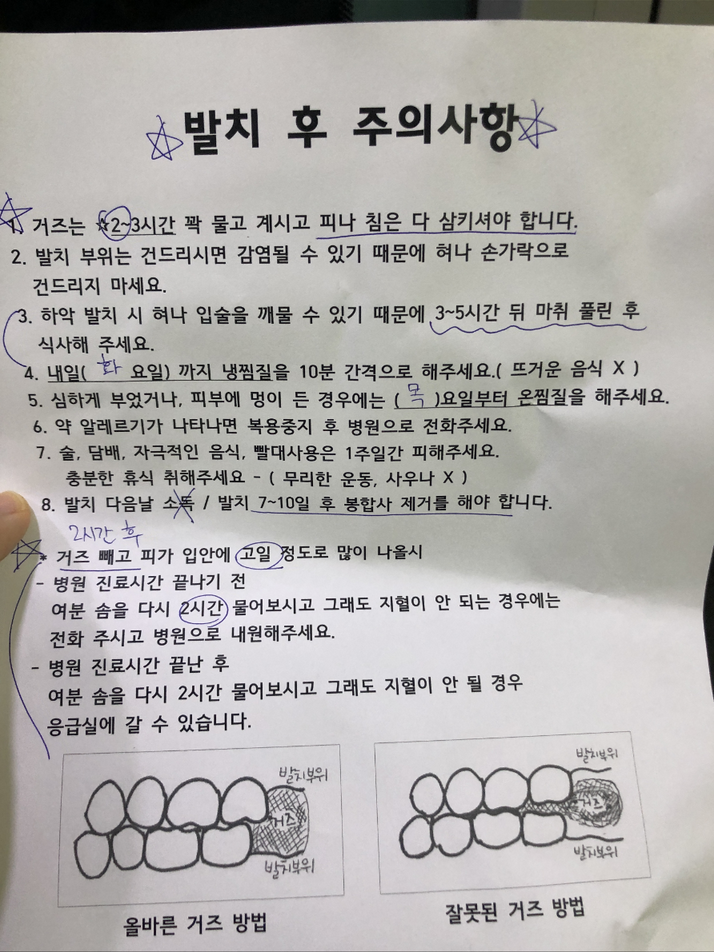 나는 사랑니 발치 후 거즈를 3시간 반을 물었음